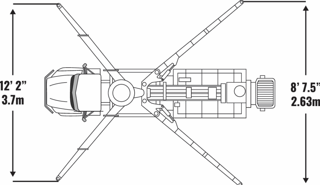 | Front Outrigger Spread: Telescope Out | 3.7 m | 12'2″ |