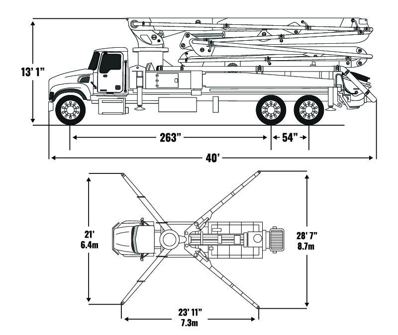 Maximum versatility is the defining characteristic of our 40-meter concrete boom pump which maximizes the three axle chassis with the longest boom reach possible creating a lower truck chassis cost. As with our 38– and 43-meter booms, the mid-size ZR boom pump is perfect for residential and commercial concrete pouring projects. Featuring a 360-degree continuous swing boom, the 40X-5ZR is highly maneuverable and can reach places that are inaccessible to less agile machines. Your crew will be able to complete jobs faster and more efficiently, which will have a positive impact on your company’s bottom line.